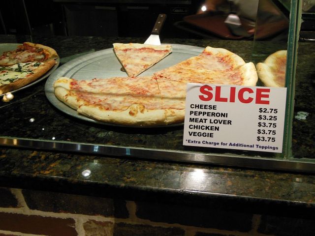 My first encounter was while driving down Piedmont Road to the Botanical Gardens when I did a drive-by stop after seeing a sign for Gino’s NY Pizza Bar run by “Two Guys from Brooklyn.” Upon entering I was greeted by a host and found that I also had to be seated and go through a waiter just to get a slice – not a Snob-friendly method of delivery. It was also obvious that this place was slightly upscale and that it also served as a bar destination. However, the $2.75 slice I ordered had a classic look and wasn’t too bad at all. The front point of the slice did flop over when I picked it up which was a foreshadowing to the fact that it had a bit too much cheese and was just a tad undercooked. And although the sauce was slightly off the standard and the crust tasted a bit flakey, the slice was one that I’d try again.