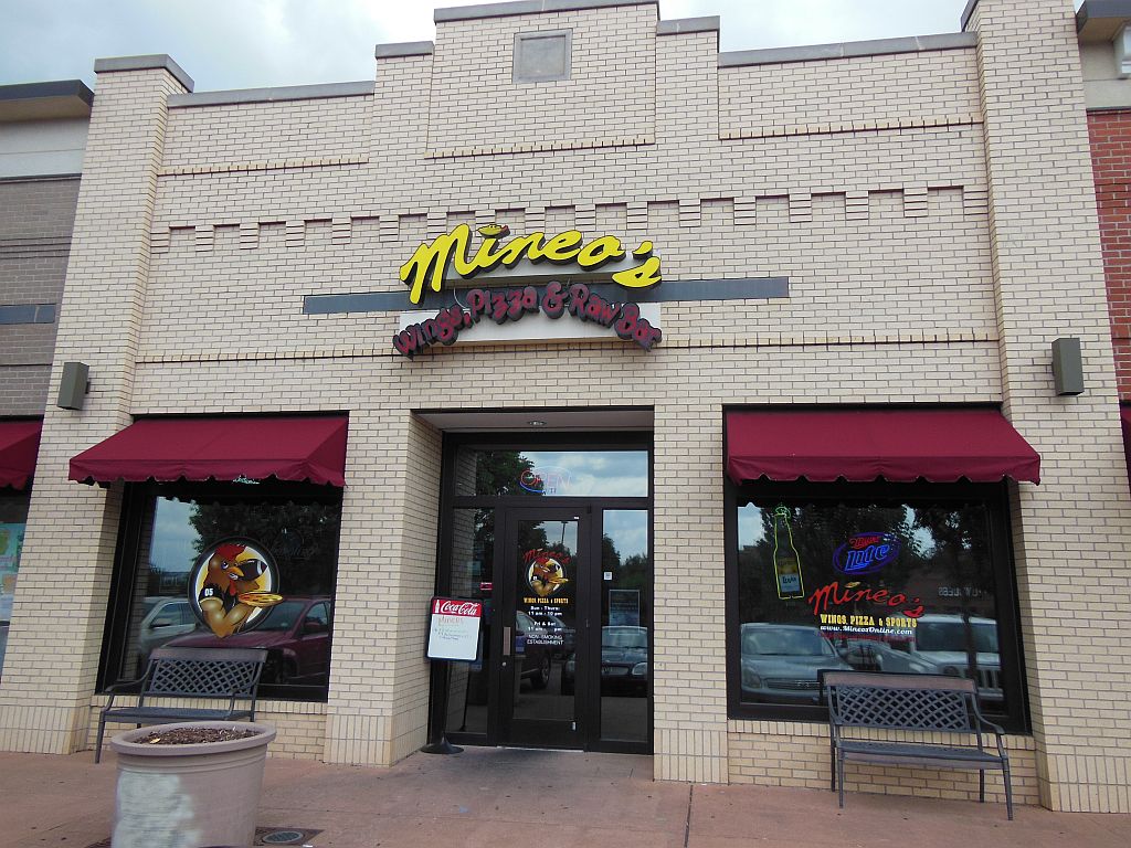 Things brightened up even more in September of 2005 when Mineo’s Pizza, Wings and Raw Bar opened its doors in the then newly-expanding east side of town off of Carothers. For awhile, Mineo’s was my go-to local place for a pie, eating both there and bringing the occasional one home as well. Overall, they make a pretty decent classic-style pie. However, beware as their name indicates, pizza wares are not their only specialty and the place also is a sports bar with televisions hanging everywhere. As for the pie I recently took home, I would say that I enjoyed it but was a little disappointed. I thought it had too much dough and the bottom crust was a bit too chewy. My other son, The Philosopher, just back from a pizza-less Germany, agreed with me about this when he reheated a few slices that I had frozen for him. The cheese and sauce were nice and they used just the right amount of oil, however, it did have more pizza bubbles than usual. Also, if you look below, it was mis-sliced just a bit. Still, I wouldn’t mind grabbing a slice there again if I find myself on the right side of town.