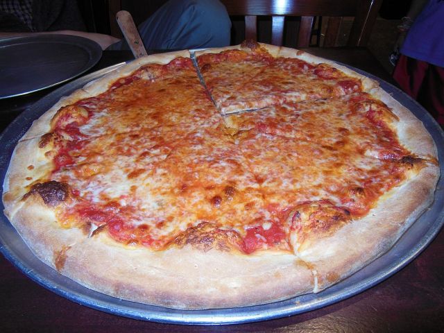 The Snob has made several trips to NY Pie, and recently, on his first “official” visit shared a large cheese pie with The Philosopher. (They also sell slices.) At NY Pie I order mine “extra crispy” which they know how to do and get right every time. I thought that the cheese and sauce couldn’t be any better. While the crust was cooked superbly, I found it just a tad too thick. On this occasion, I also thought that the crust may have had a little flakey texture to it. The Philosopher theorized that they may have gotten a bit heavy-handed with one of the ingredients. Unfortunately, my pizza-making science hasn’t developed enough to quite figure that one out yet.