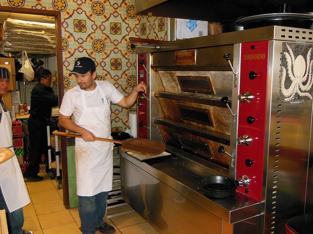 Grimaldi’s opens at noon on Saturday. We arrived at 1:00 expecting a line but not one requiring a two-hour wait! While discussing a possible plan revision, we read in a newspaper article pasted on the window of the original Grimaldi’s location that Patsy Grimaldi, the original owner of the joint, was getting back in the business in his old spot after 13 years. His place is to be called Juliana’s. The current owner of Grimaldi’s had since moved to a new larger location a few doors down. Courtesy of my new iPhone, we found a suitable and quicker alternative in Ignazio’s Pizza which was just around the corner. There was a line there as well, but it only took us about 30 minutes to get in and be seated. Goes to show that pizza is big business in Brooklyn!