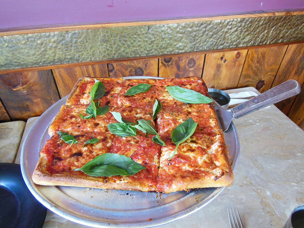 Conclusion: Both pies were outstanding! The sauce tasted out-of-this world delicious. I just loved the kick that the basil gave to it. The cheese was a tad oily. It also didn’t melt as smoothly as NY-style and was in some spots crumbly. But, none of this really mattered as the crispy and tasty crust folded up just right for eating in classic style. The square Siciliana was great as well and was not too thick or doughy tasting. It’s funny how the middle slices of the Siciliana were the last ones left as the crunchy outer edges of crust are the best part. I don’t think the Snob will ever change his allegiance to NY-style pie, but these are simply a must-try for any pizza lover.