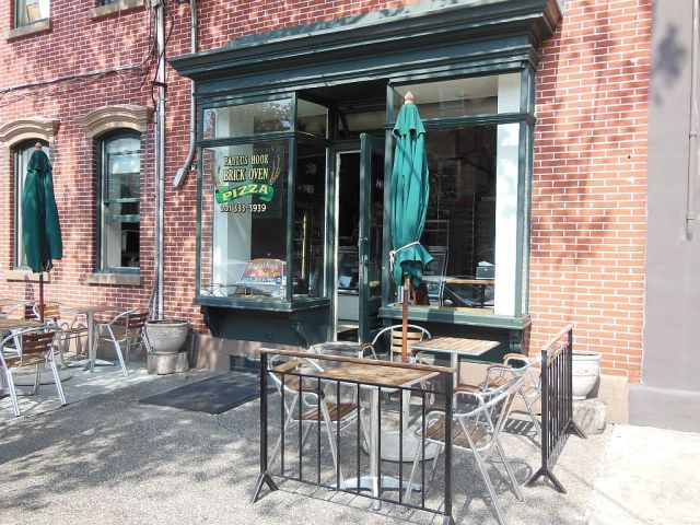 During my recent Springsteen trip back to New Jersey, a few of my old high school buddies planned a Facebook-driven, mini-reunion for Saturday lunch. Feeling obliged to pay homage to the Snob, one of them suggested Paulus Hook Brick Oven Pizza. None of us had been there before, but it served as a good meeting place since it was just a few blocks from our old school. I had mixed emotions: I tend to be leery of non-NY style joints. I certainly didn’t want to sound like too much of a snob to a bunch of old friends whom I rarely see, so I agreed.