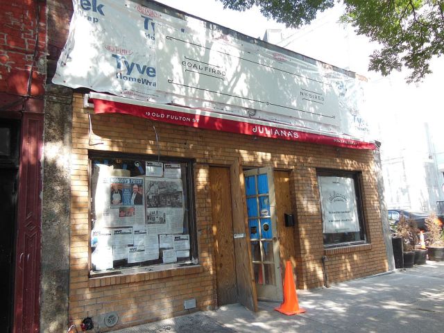 It’s a great in-depth story about the continuing “Brooklyn Pizza War” and how Patsy is getting ready to re-enter the pizza business in his new place at the site of his original Grimaldi’s. (See our earlier story at this link.) Here’s what Juliana’s looked like when we visited Brooklyn while it was still under construction.