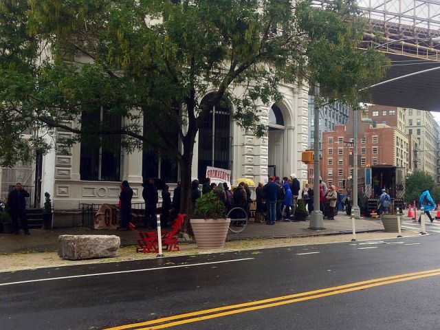 Despite the impact of Hurricane Sandy, Brooklyn’s famous Grimaldi’s Pizzeria is open today. And as always, there’s a line to get in. Here’s a photo from this afternoon sent by The Kid’s girlfriend Rachel who currently calls Brooklyn home.