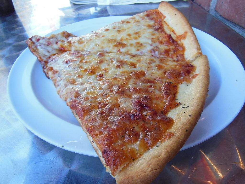 New York Pizza is pretty much a bar–aka Bronx Bar–that serves pie, salads, calzones and a few Italian dishes. They have been around since 1980, and the place seems to be a popular local hang. There is a good-sized seating area inside, but after ordering two cheese slices at the bar ($2.25 a pop), I opted for an outside table to enjoy some late afternoon sunshine.