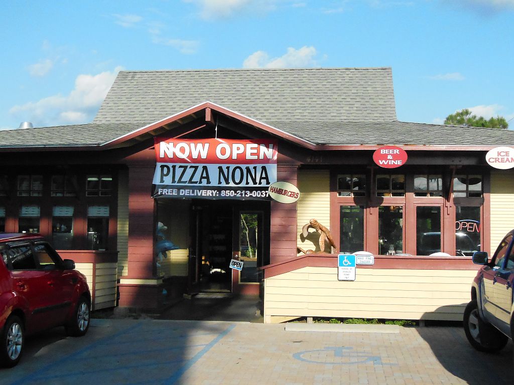 Arriving in Seagrove Beach, I immediately spotted a change in the landscape with Pizza Nona and its prominent “Now Open / Free Delivery” sign. Located in a redesigned free-standing building, this joint devotes only half of its space to pizza, calzones, and salads. Using good beachside business acumen, it smartly offers ice cream, coffee, and smoothies in its other half.