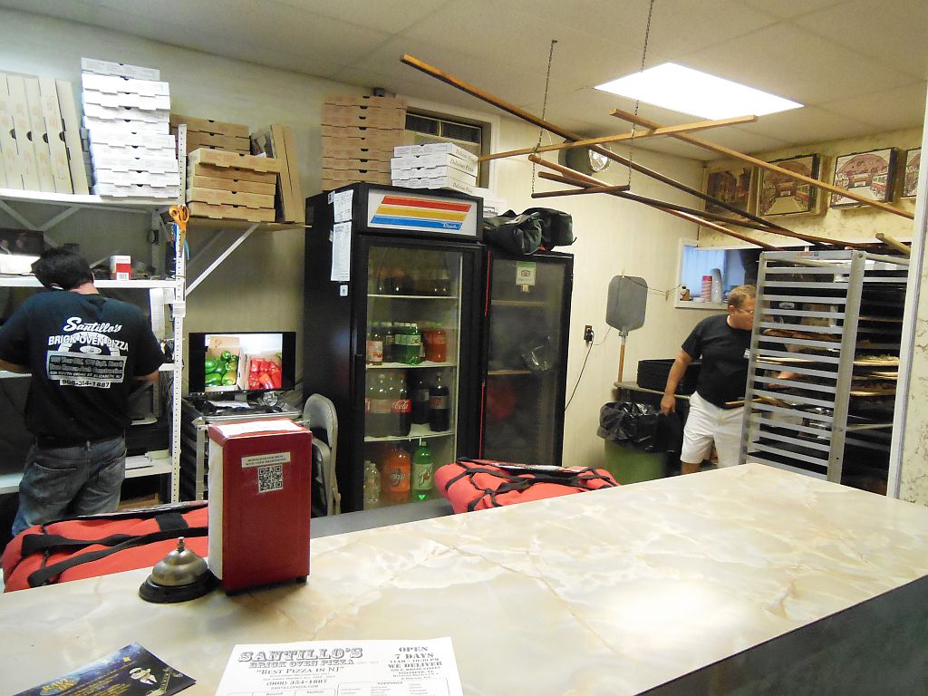 Heading out for the evening in Jersey with enough time for a pizza stop, I took counsel from the 2010 article in New Jersey Monthly on the state’s “25 Perfect Pizzas.” Unfamiliar to me, I picked Santillo’s Brick Oven Pizza in Elizabeth—they’d been in business since 1918.