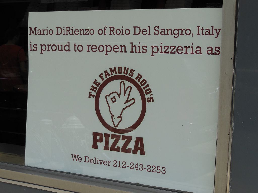 The Pizza Snob is sad to hear that Manhattan’s Famous Roio’s Pizza has closed. As first reported in Jeremiah’s Vanishing New York blog site, the day before Thanksgiving would have been your last chance to get a great slice at the true original Ray’s pizza.