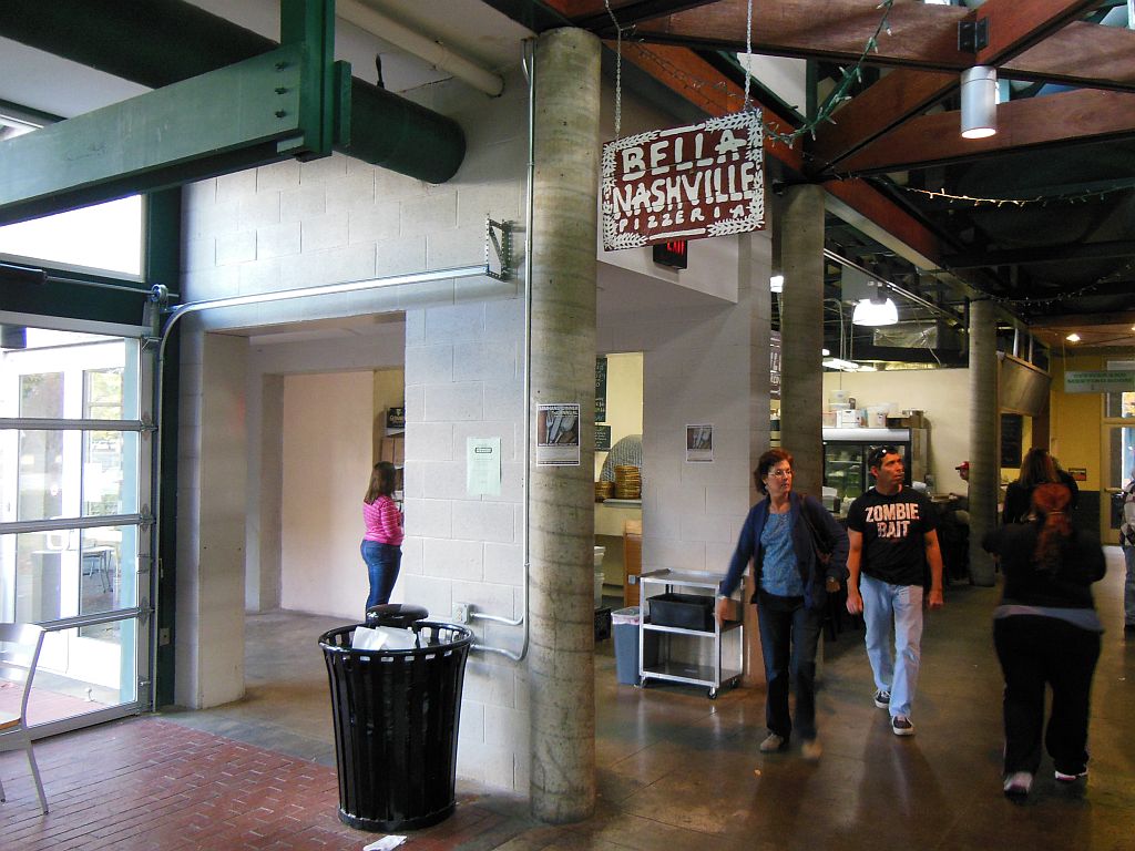 A Saturday afternoon jaunt with Ms. Pie turned into an accidental pizza adventure for the Pizza Snob. While touring the Nashville Farmers’ Market (NFM), I happened upon their surprisingly exotic indoor food court, dubbed the Market House, where instead of the usual Sbarro, I found the locally-owned and operated Bella Nashville Pizzeria. It seems that the Market House is no ordinary food court—so much so that TV show Diners. Drive-Ins and Dives paid a visit to feature its Jamaican dining spot.