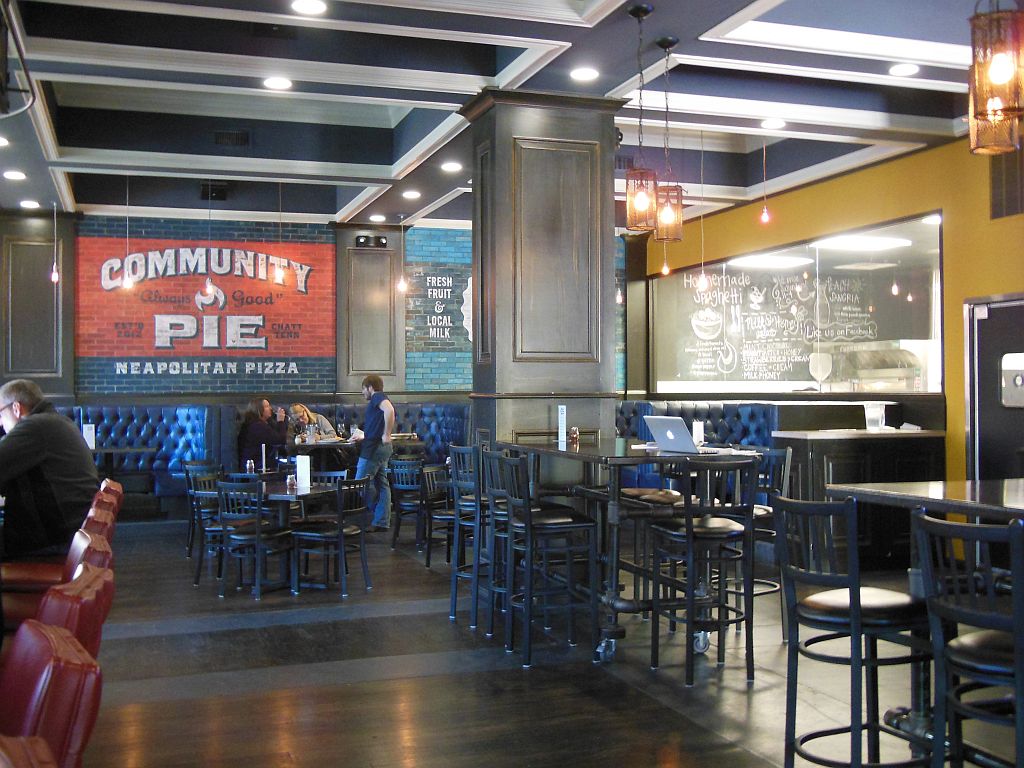 Only open since 2012, Community sits smack dab in the middle of downtown on the front corner of modern building complex. A wide open barroom/restaurant kind of place, my running buddy and I took seats at the bar. While eyeing the menus, Arlee, our friendly barkeep, told us that they just started making NY-style three days ago. Confident of their new skill, the menu was already laid out with Neapolitan pie on the left and the real stuff on the right. I ordered my plain cheese ($3.00) while the Clayman put a pepperoni addition on his.