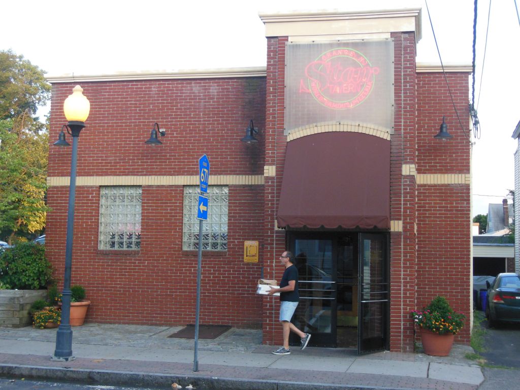 One Friday night, my brother and I took a drive to the city of “plain” Orange, as compared with West, East and South Oranges, (sorry no North) that is just west of Newark. Located in an otherwise residential neighborhood, the Star sits on the corner where High Street T-bones into Washington Street. Expecting a busy evening crowd, we arrived early enough to still find a spot in their adjacent side parking lot. There we were greeted by a large sign labeling the Star as a “World Famous Pizzeria.”