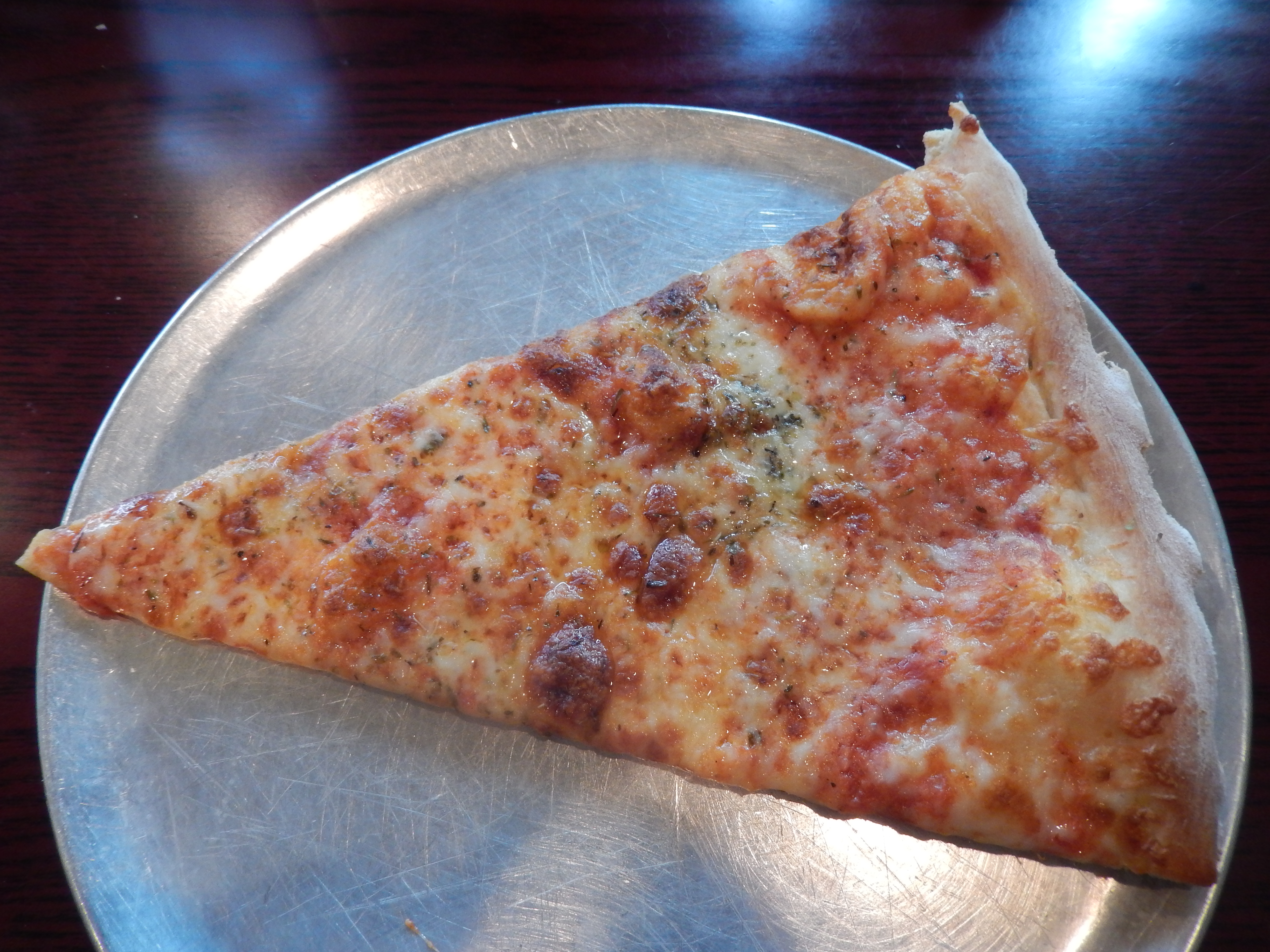 On our first visit, I lost the race for the last cheese slice sitting under glass on the counter and had to settle for an $8.95 12-incher. However, on our second visit, I scored a slice, holding off on my review until then, since I believe that a joint that sells slices should be judged by its slices.