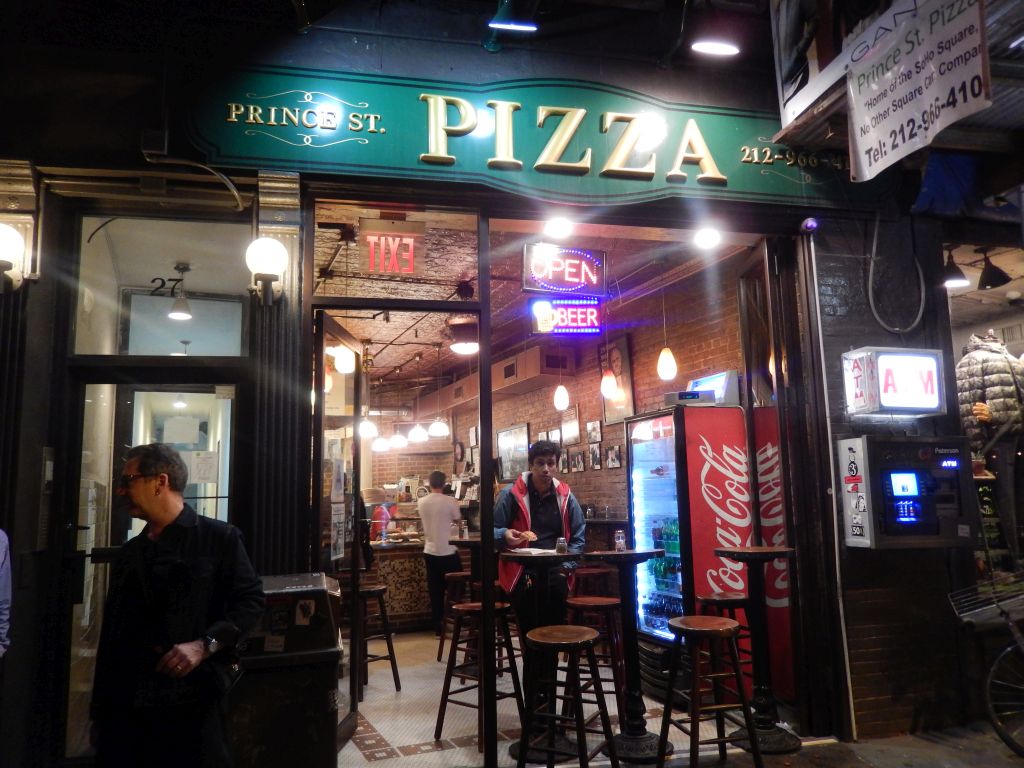 Together Mitch and I then proceeded to walk east to the area known as Nolita (“NOrth of Little ITAly”). There’s really nothing else like walking through Greenwich Village on a pleasant evening, and the late night activity in the “City That Never Sleeps” never fails to amaze me. We made our way through the human spillage exiting Little Italy to find Prince St. Pizza in a small open-air modern-looking store front on the north side of the street.