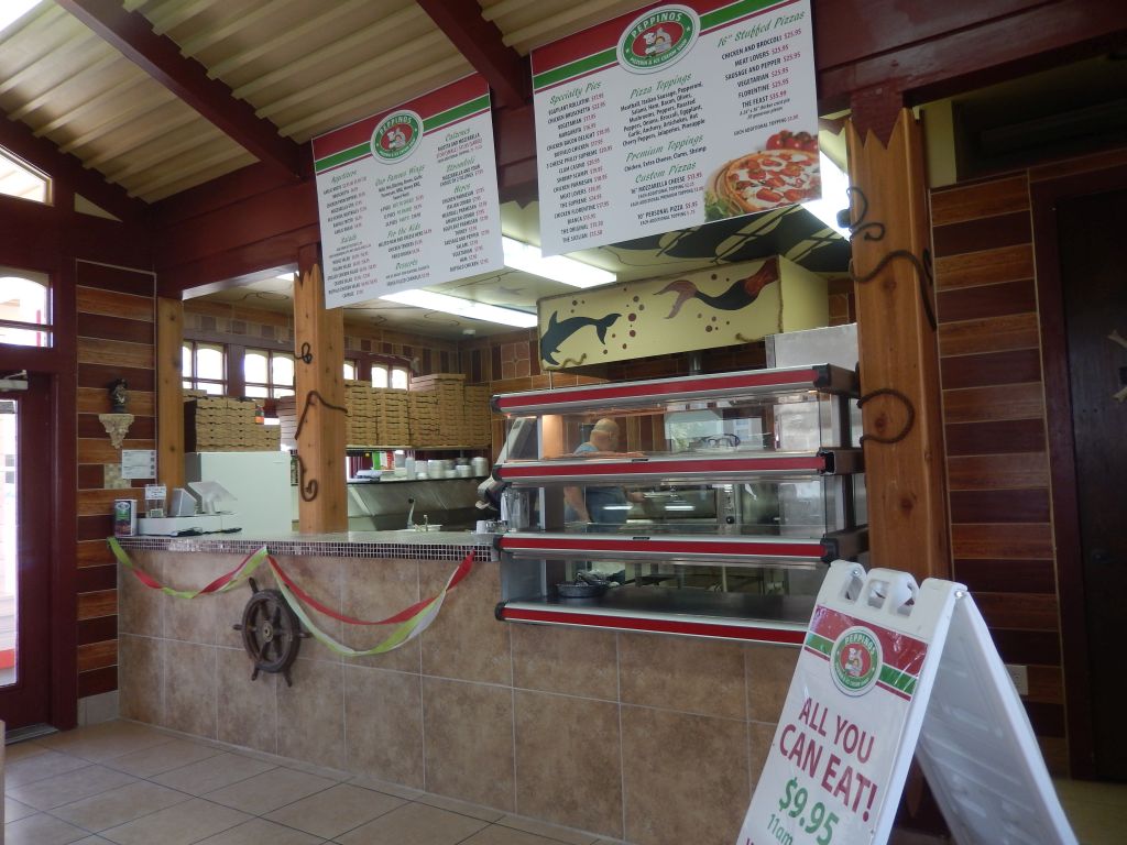Peppinos - outside sign - RESIZEIt was once again time for the Pizza Snob’s annual vacation to the Florida Gulf Coast—a beautiful and relaxing place where I could never spend too much time. It also meant that it was time to update the state of the heretofore mediocre pizza pickings on the Panhandle. Well sunshine and pizza lovers, after first passing along the sad news of Enzo’s closure, I am now excited to report that things have gotten considerably better.
