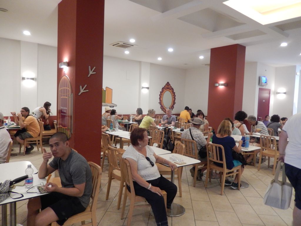 I finally got my slice which despite the fact that it was sitting there for who knows how long, the dude behind the counter did not think was necessary to reheat. Retreating to a table in the cafeteria section, I knew I was about to be disappointed. Surprisingly, I could not believe how much this large cold double-wide slice reminded me of America’s own Papa John’s pizza. It was also about as dull, doughy and bland-tasting as one could possibly be—just like Papa John’s. I then thought, “Could PJ’s or some American firm actually gotten the contract at this facility?” Or is there also bad pizza to be found in Italy? (I later learned that this place was run by Autogrill, an Italian catering firm.)